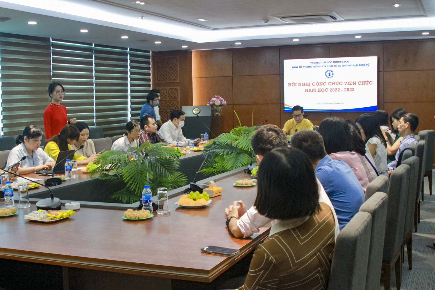 Chúc mừng thành công của HỘI NGHỊ CÔNG CHỨC VIÊN CHỨC Khoa HTTT Kinh tế và TMĐT năm học 2022-2023. 9h sáng thứ 4 ngày 14 tháng 9 năm 2022, tại Hội thảo tầng 1 Nhà F Đại học Thương mại diễn ra Hội nghị Công chức viên chức Khoa HTTT Kinh tế và TMĐT.