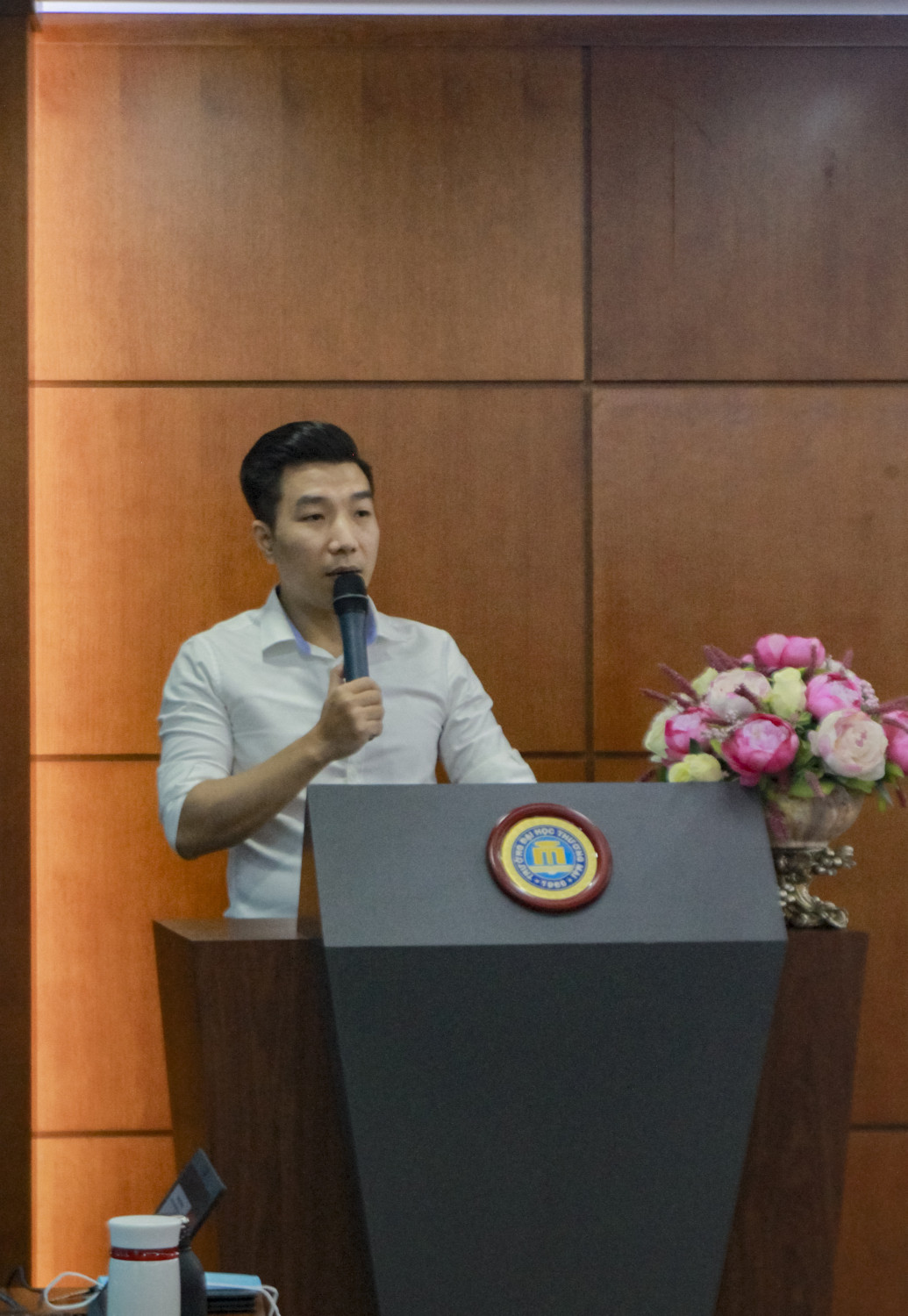 Buổi lễ bắt đầu với nghi thức chào cờ, sau khi tuyên bố lý do, giới thiệu đại biểu, tuyên bố chủ trì và thư ký đại hội, đồng chí Nguyễn Trần Hưng trình bày báo cáo tổng kết năm học 2021-2022 và phương hướng nhiệm vụ năm học 2022-2023, dự thảo Báo cáo tổng kết năm học 2021-2022 và nghị quyết năm học 2022-2023 của Trường Đại học Thương mại. Sau gần 1h thảo luận và đóng góp ý kiến Báo cáo tổng kết năm học 2021 – 2022 và phương hướng nhiệm vụ năm học 2022 – 2023 của Khoa HTTT Kinh tế & TMĐT và Dự thảo Báo cáo tổng kết năm học 2021 – 2022 và phương hướng nhiệm vụ năm 2022 – 2023 của Trường Đại học Thương mại, Hội nghị đã đưa ra được một số ý kiến đóng góp xác đáng, được ghi vào trong biên bản của Hội nghị. Đ/c Nguyễn Trần Hưng thông qua Nghị quyết Hội nghị năm học 2022-2023 của Khoa HTTT Kinh tế và TMĐT.