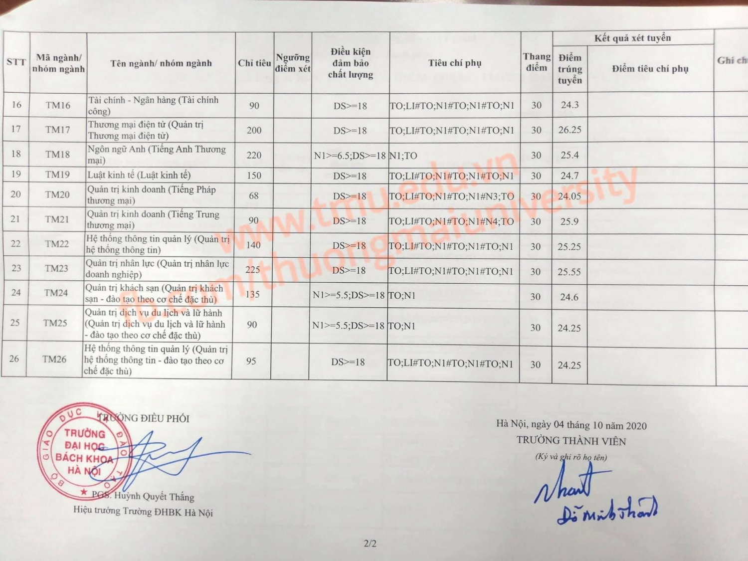 Ngày hôm nay 04/10 Trường Đại học Thương mại đã công bố điểm chuẩn của NGÀNH TMĐT và NGÀNH HTTTQL NĂM 2020