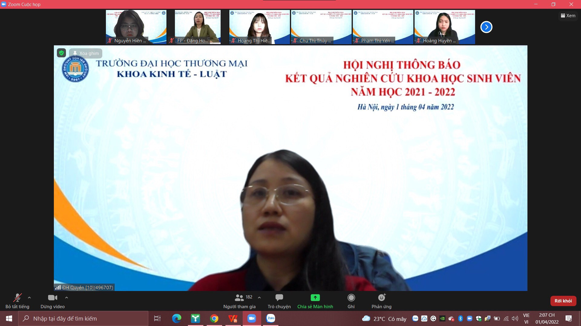 Hội nghị báo cáo kết quả NCKHSV năm học 2021-2022 khoa Kinh tế - Luật