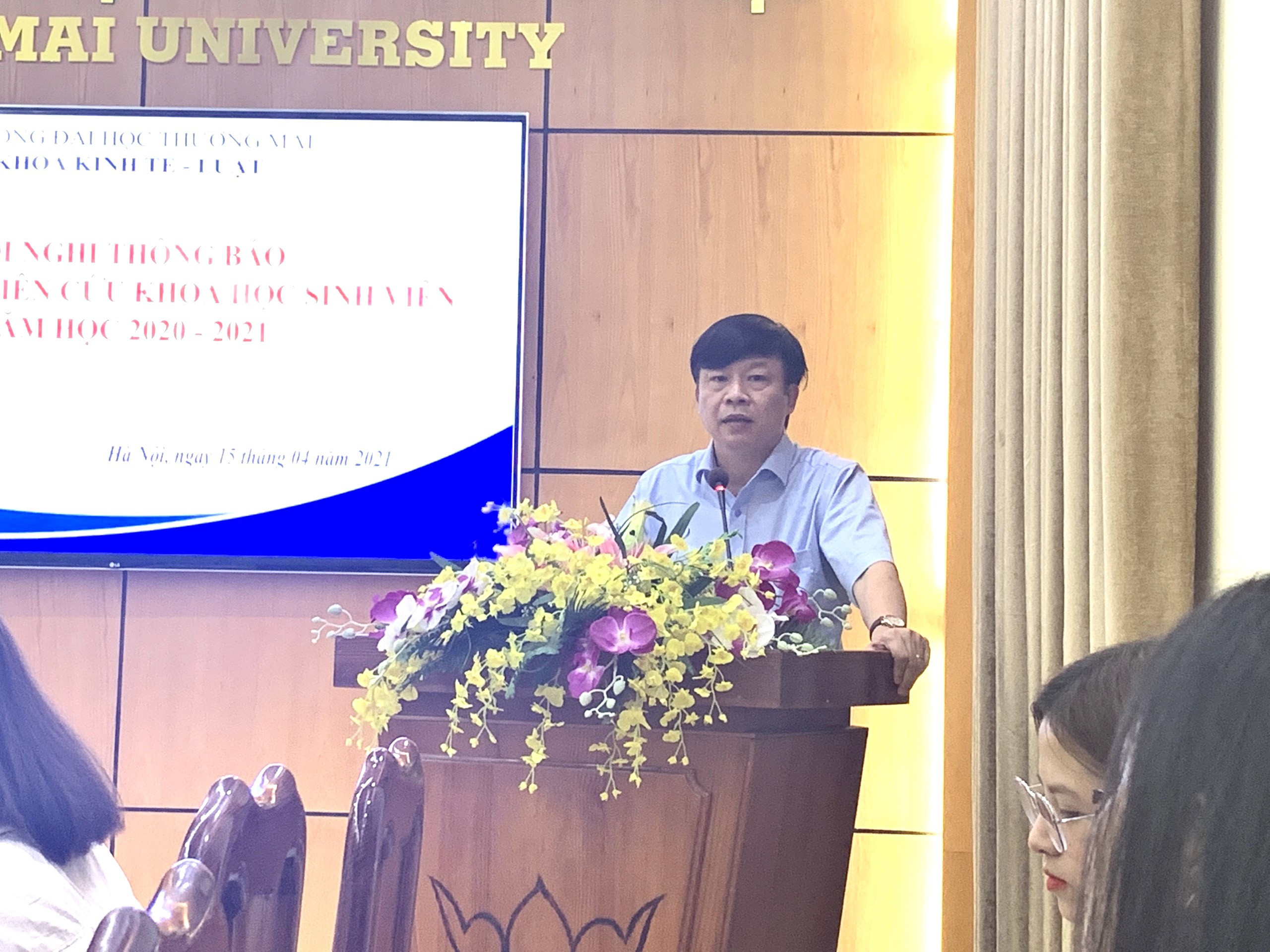 Nhằm thực hiện kế hoạch năm học 2020 – 2021, vào hồi 8h30 ngày 15/04/2021, Khoa Kinh tế - Luật đã tổ chức Hội nghị báo cáo kết quả nghiên cứu khoa học sinh viên tại tại phòng họp số 1 nhà I Trường ĐH Thương mại.