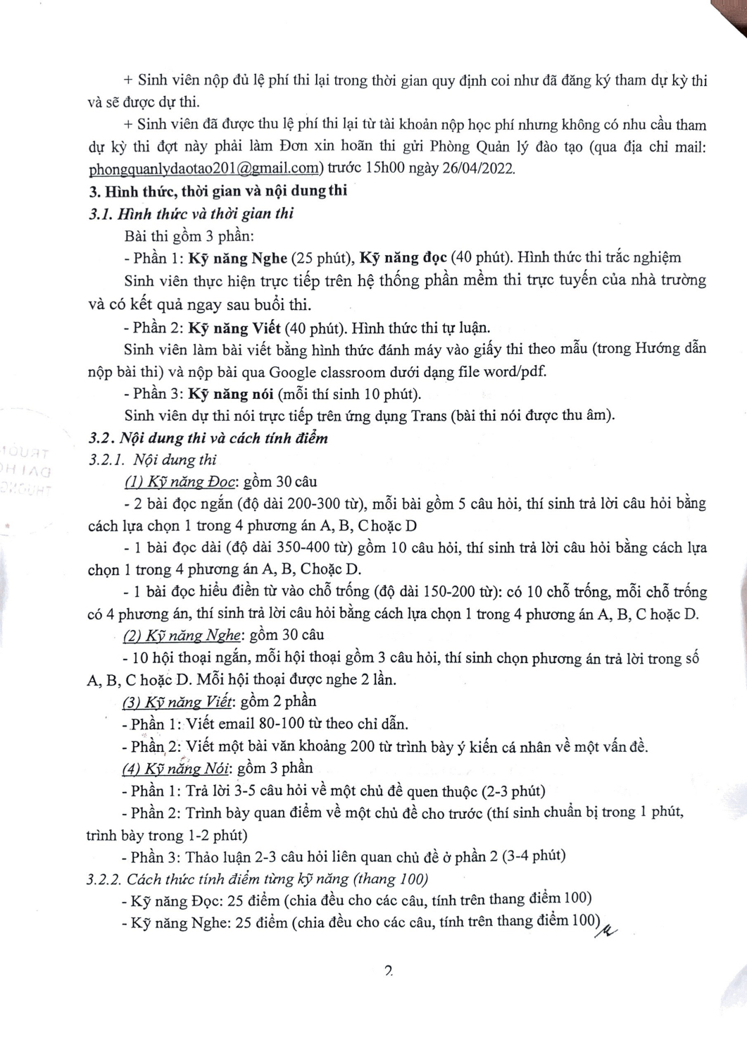 Thông báo lịch thi chuẩn đầu ra tiếng anh cho sinh viên các khóa 52, 53,54,55 tháng 5/2022.