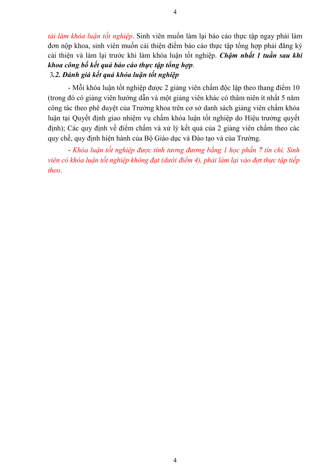 QUY ĐỊNH THỰC TẬP VÀ LÀM TỐT NGHIỆP ĐỐI VỚI SINH VIÊN CHÍNH QUY KHÓA 52 VÀ KHÓA CŨ NĂM HỌC 2019 - 2020