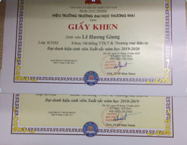 Một vài thành tích mình đạt được trong quá trình học tập ở ngôi trường Thương Mại: