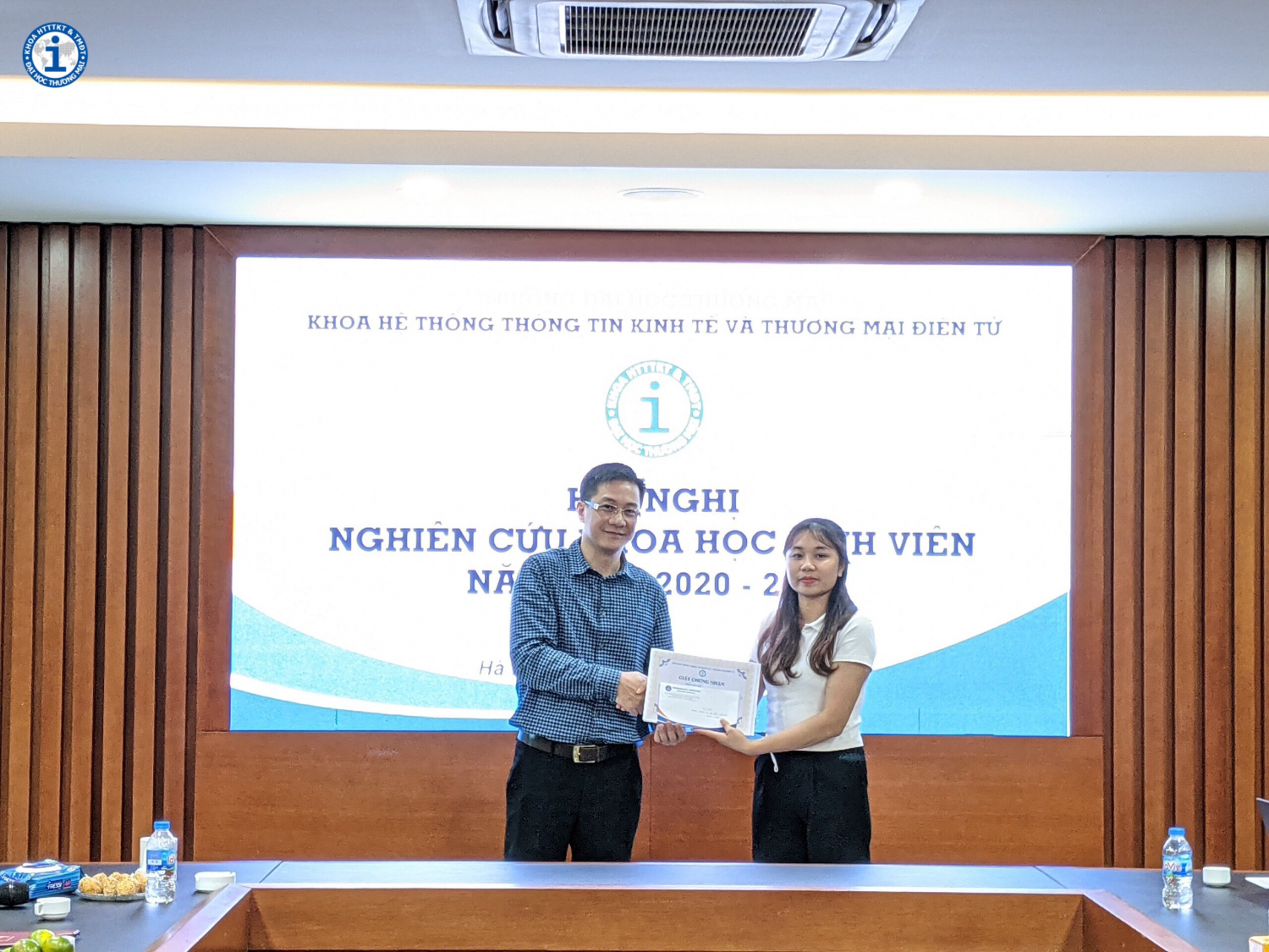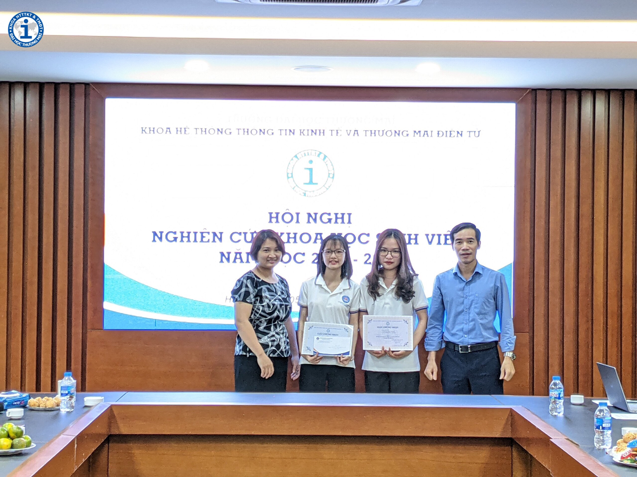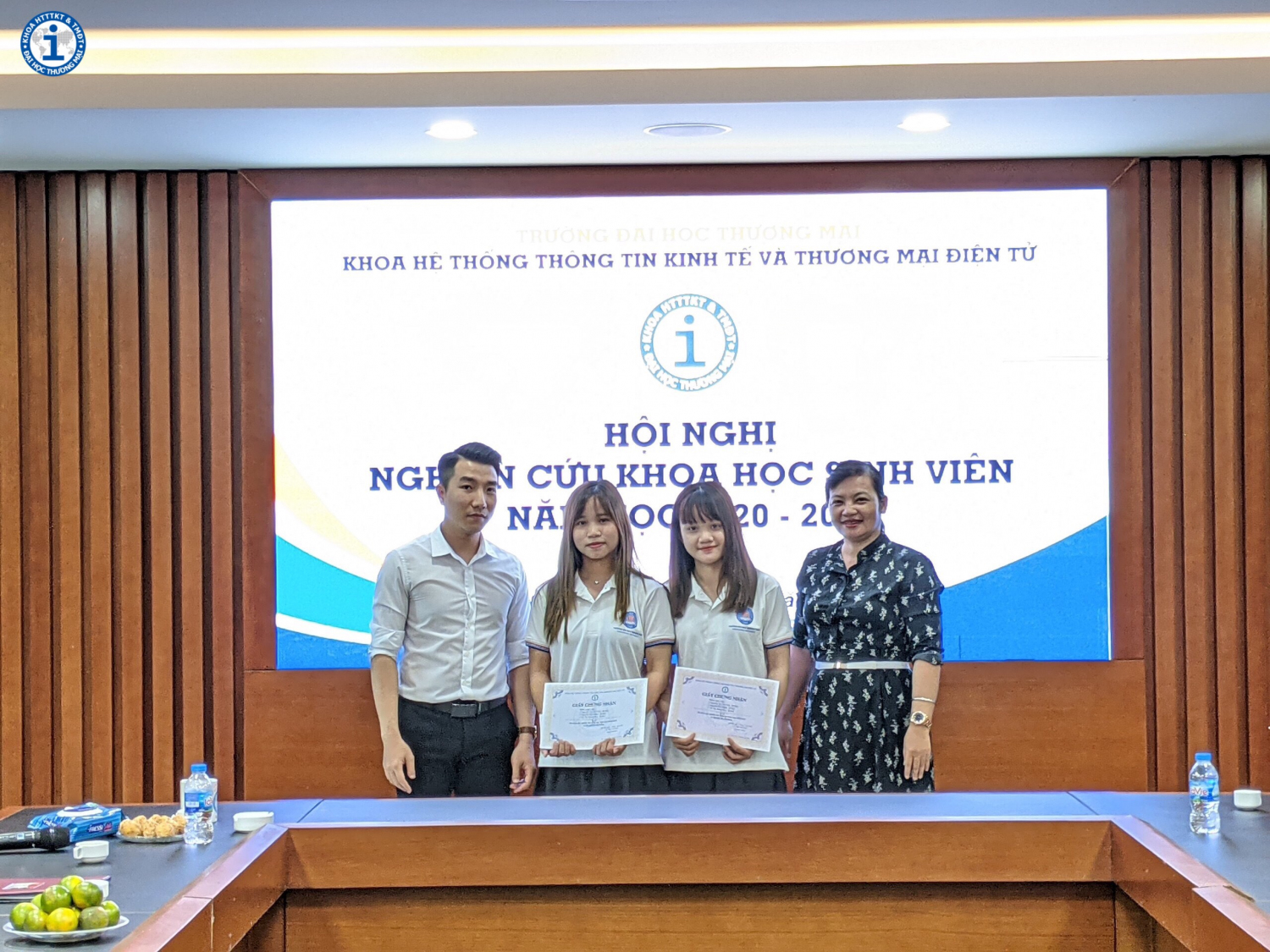Do tình hình dịch Covid-19 diễn biến phức tạp, để đảm bảo an toàn, Hội nghị NCKHSV năm học 2020-2021 của Khoa HTTTKT & TMĐT được tổ chức nội bộ, với quy mô nhỏ, giới hạn đối tượng SV tham dự. Tuy nhiên Hội nghị đã diễn ra thành công tốt đẹp. Các công trình nghiên cứu của sinh viên đã tìm hiểu và giải quyết những vấn đề cấp bách của kinh tế xã hội. Kết quả nghiên cứu đã khẳng định phần nào những nỗ lực nghiêm túc của các nhóm nghiên cứu, hứa hẹn những mùa nghiên cứu khoa học thành công hơn nữa của Khoa trong các năm học tiếp theo.